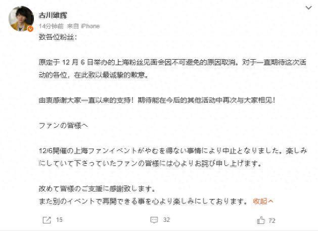 据此前报道,继部分日本电影暂缓上映后,一日本男团宣布取消原定在广州举办的粉丝见面会。